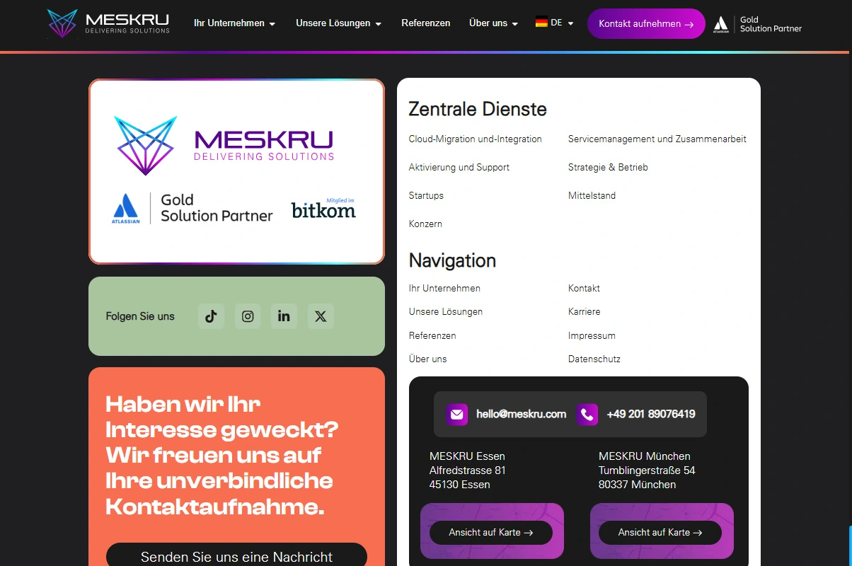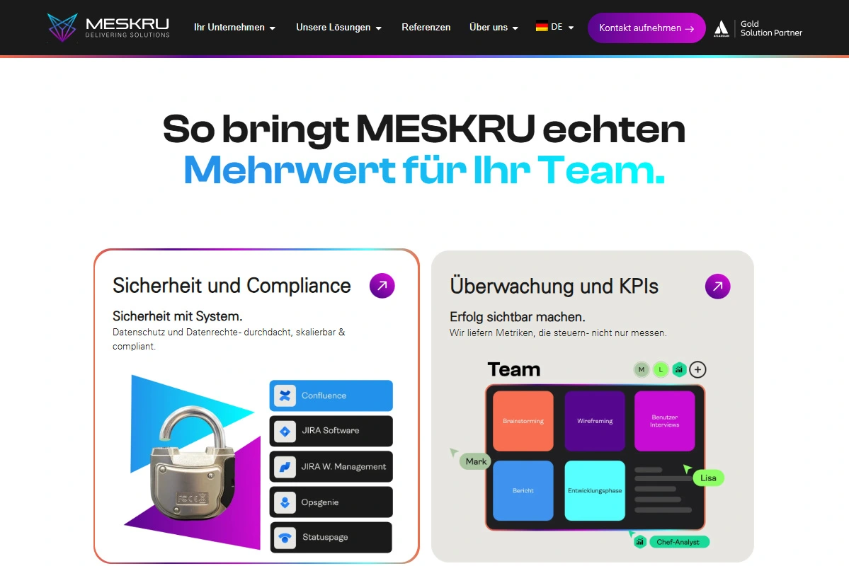 MESKRU richtet sich an Startups, mittelständische Unternehmen und Konzerne und begleitet diese in Bereichen wie Cloud-Migration, Service-Management, Team-Collaboration und Lizenz-Management. Die Beratung fokussiert sich auf die Einführung skalierbarer, effizienter Prozesse sowie auf die nachhaltige Nutzung von Tools wie Jira, Confluence und weiteren Atlassian-Produkten.